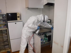 本日は、以前従業員の方が新型コロナにかかってしまった事業所へ再除菌の作業に行ってきました。