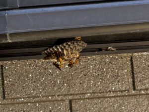 本日点検のためお客様宅に到着し車を止めようとしたところ目の前にアシナガバチの巣がありました。