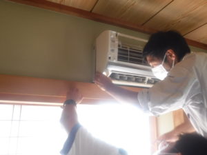 今回は丁度同じタイプのエアコン2台でしたので、先ずは1台お手本を見せて頂きながらもう1台を私がさせて頂きました。