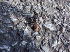 会社で仕事の準備をしていると、足元にモゾモゾと黒いものが動いているので何かと思い観察してみると、それは地蜘蛛でした!