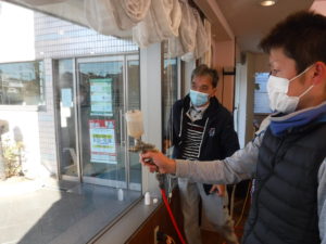 下の写真は抗菌コーティングをしている様子です、また、クルマなど密閉した場所などにも最適です。。