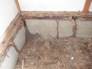 イエシロアリは床下だけでなく壁内の柱や小屋裏材も激しく食害するので十分に対策を講じることが重要です。