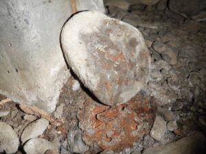 床下には蟻道とシロアリの食害があり、たわみの原因であることが確認され写真を撮って奥様に報告させて頂きました。