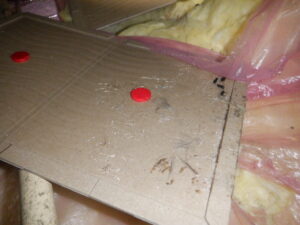 前回、小屋裏に仕掛けたネズミ捕獲用の粘着板にネズミが触れたと思われる跡が確認出来ましたが、連日の猛暑のために粘着剤が熱で溶けて逃げてしまったようです。