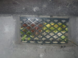 齧られたような跡がついていることや、基礎に設けられた通気口が破損していることから、ネズミの仕業だと考えられます。