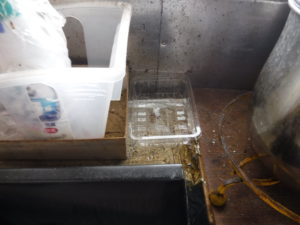 設置しておいた駆除用の毒餌が喫食されて全く無い状態とともに捕獲するための粘着トラップには証跡が見受けられました。