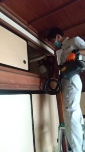 工事は隙間を塞いだ後に痕跡のあった天井裏・押入れ内を除菌して安心してもらいました。