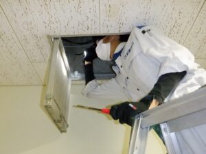 病院内の室内全域はもちろん地下ピットや天井裏に至る隅々をみて回ります。