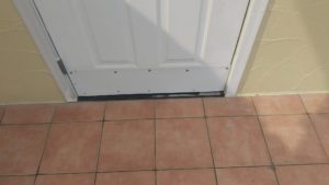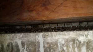 被害場所は出入口のドア枠がシロアリに激しく食害されていて、侵入場所を特定するために床下を確認するとポーチのコンクリートと基礎との境に隙間がありそこに白アリの侵入の際にできる蟻道が確認できました。