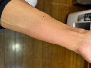 何だろうと?と思いながら作業を進めていましたが、どんどん赤く腫れ上がり手首を動かすだけでも痛みがあり、痛みも増してきます。
