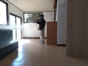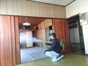 本日は、購入した中古住宅をリフォームし入居前に建物内の害虫駆除をして欲しいとのことで工事に行ってきました。