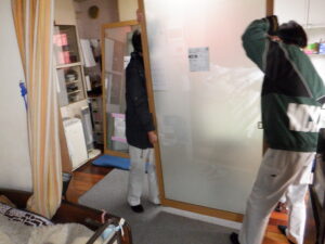 掃き出し窓の大きいものなどは2人で慎重に移動、取付を行うこともあります。