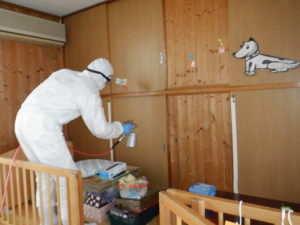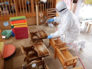 今日も感染が確認された保育施設の除菌に行ってきましたが、そうしたことを踏まえて除菌と合わせて抗菌コーティングも施工することになりました。