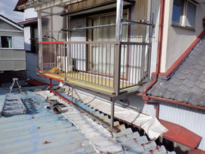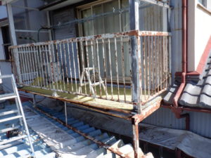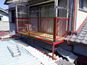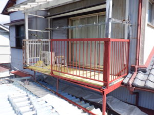 本日はベランダの鉄骨部分のケレン、錆止め、ウレタン仕上の段取りとなりました。