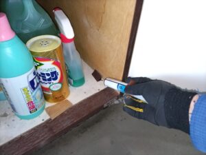 ゴキブリの証跡はありませんでしたが、気が付かないうちに侵入されたり持ち込んでしまうこともあるので生息調査用のトラップを設置と万が一に侵入された時のために予防処理を行いました。