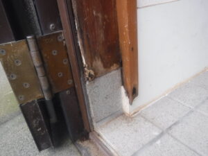 問題となる場所は入口ドアの枠で建物外部にも木部が使用されている構造をしていました。