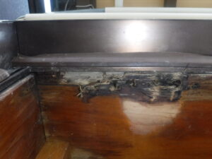 また、写真で見るように木部の下部に隙間なくタイルを取り付けてしまっているため水はけを悪くしています。