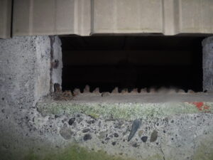 築年数が経過した住宅の通気口は写真の様にサビて穴が空いてしまうので、日常では目に入らいない場所だけに一度穴がないか確認してみると良いと思います。
