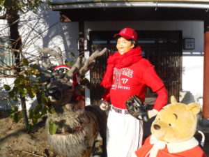 本日、白ありの工事をさせてもらったお宅はクリスマスの季節になるとサンタとトナカイの人形を飾るそうですが、今年は活躍目覚ましかった大谷選手の人形が飾られており、通りかかった人々の注目を集めていました。