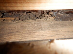写真は被害の一部ですが、床を支えることが出来ないほどに束柱が激しく食害されているのが分かりますが、もし異変に気が付かず見逃していたら、さらに被害は拡大して建物に大きなダメージを与えていたと思います。
