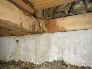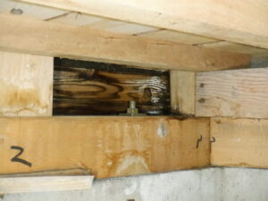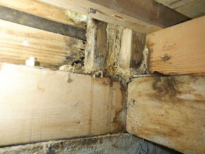 気にされていた見えない部分の状況は、特に床下の診断においては壁内や床組に不具合が確認され、土台や柱・筋かいに雨染み跡、腐食、クロアリの巣、シロアリの食害による被害などが確認されました。