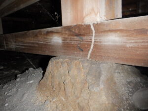 調査では床下に白アリの食害が確認され現在も活動している様子もみられました。
