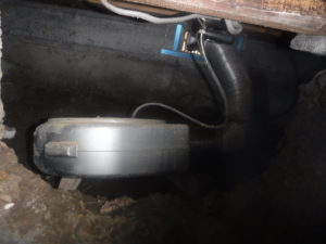 元々湿気の強いお宅のため床下換気扇を導入されていましたが、換気扇は完全に水没して使い物にならない状態となっています。