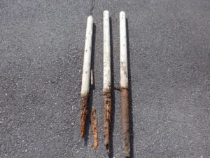 土から出ている部分はキレイで何も問題はないように見えましたが、少し触ってみるとグラグラと全く杭の役割をはたしていませんでした。