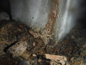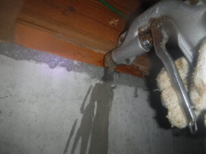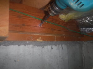 被害箇所は床下だけではなく室内の壁にまで食害があり内装のクロスに穴が開くほどでしたが、壁を剥がしてまでの予算はかけられないとのことでしたので、壁に穴を開けて薬剤を注入する処理を施しました。