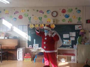 この幼稚園はずいぶん前に私の子供たちも通っていた幼稚園で、もう30年近くサンタクロースをさせて頂いています。