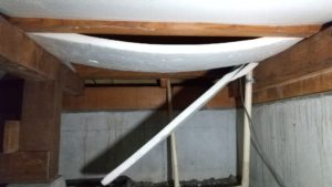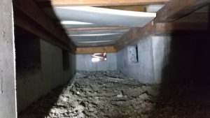 2015年に白アリ予防工事を行って5回目の定期点検でしたが、昨年は目立たなかった床の断熱材の脱落が所々見られました。