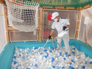 日常点検や清掃を行うことでキレイに管理はされていますが、子供たちの皮脂や髪の毛などが細かい隙間に入り込んでしまうため、総合的な清掃や防除を行います。