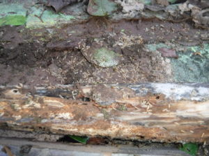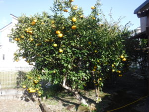 施工にあたっては床下だけでなく建物周辺の状況も確認していますが、庭に植えてあったみかんの木の近くに材木などが山積みされて置いてありました。