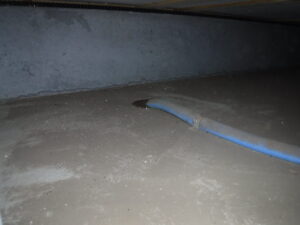 床下点検口を開けてみるとコンクリート土間には本来はないはずの土が確認できました。