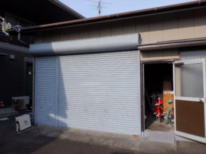 新規の一般のお客様より「昭和53年に建てた別棟の倉庫で数年前から雨漏れしていてなんとかしたい、合わせて出入口のシャッターが重く小さいひ孫達がマイ自転車の出し入れの際開閉が大変」とのことで改修工事の依頼を受けました。