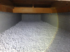 一袋10㎏入りの床下調湿材を部分的に敷き詰めました。