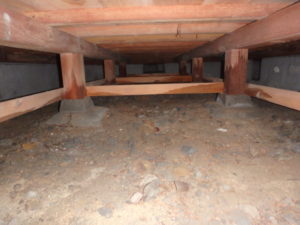 コンクリートの床下は一見乾燥しているように見えますが、コンクリートは水分を保つ性質があるため梅雨時は通気が悪い床下ではかなりの湿気となり木材の劣化となるカビの発生やシロアリが発生しやすい環境になるので注意が必要です。
