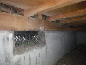 また、土台の上の隙間の様子から壁に断熱材が入っているようですが、気流止めがありません。