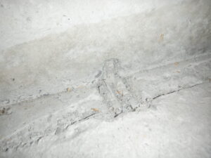 床下がベタ基礎コンクリートであっても水抜きの穴があったり、立ち上がりの基礎との繋ぎ目、配管の穴、ベース(土間)の打継、基礎のひび割れなどがあり、いくらでもシロアリの通り道は存在するため、予防剤(バリア)の効果が切れてしまうと無防備な状態となり、いつでもシロアリの侵入を許してしまう状態になります。