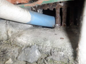 調査をすると基礎に設けられた通気網が錆びて穴が空いてたり、水道工事で通気網を加工して隙間が出来ていたり、ネズミが侵入できる場所が何か所も確認されました。