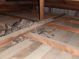 天井裏に入って見るとハクビシン独特の糞の臭いと山になった大量の糞溜りを確認。