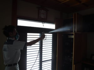 施工内容は隅々まで行きわたる特殊な薬剤の散布や持続性のある薬剤などを巣作りしそうな場所に塗布などをします。