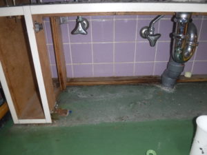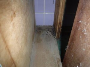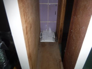 手洗い場の下のパネルを外してみるとゴキブリの姿は確認できませんでしたが、糞が所々にあり生息の痕跡を確認できました。