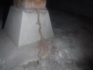床下を確認すると建物の全域にシロアリの蟻道や食害そしてシロアリの活動も確認でき、食害の激しいところでは床を支える根太も荷重に耐えられず折れているところもあり、深刻な劣化事象が確認できました。