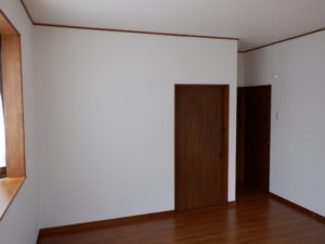 洋室の既設のクローゼットを解体し、天井・壁のクロス張替え、床の上張り、コンセント・照明器具の交換、1・2階のトイレの換気扇交換という小規模の内容でしたが、2人の子供部屋としては十分な広さで明るく綺麗に仕上がりました。
