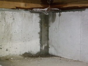 本日の建物定期点検で床下を調査すると、写真でも分かるように建物の構造耐力上主要な部分である基礎や土台にかなり激しく水漏れをしているのが確認されました。