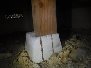 床下に入って見ると、やはり和室下に白アリの生息が広範囲で確認でき、大引きの食害が激しくボソボソと酷かったため白アリの駆除だけでなく床組みから補修するという大がかりな工事となってしまいました。