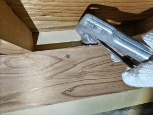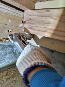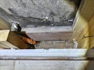 写真は一部小上がりの部分があった場所を大工さんに点検口を作成してもらい処理をしている様子です。