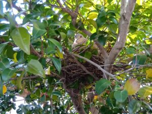 見ると高さが180㎝ほどある木の枝に鳩が巣作りをして卵を温めているようでした。