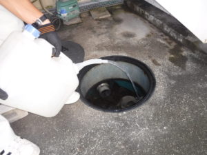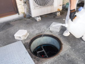 テナントビルのお客様より浄化槽付近からコバエが発生するということで、発生を抑えるため7月から定期的な